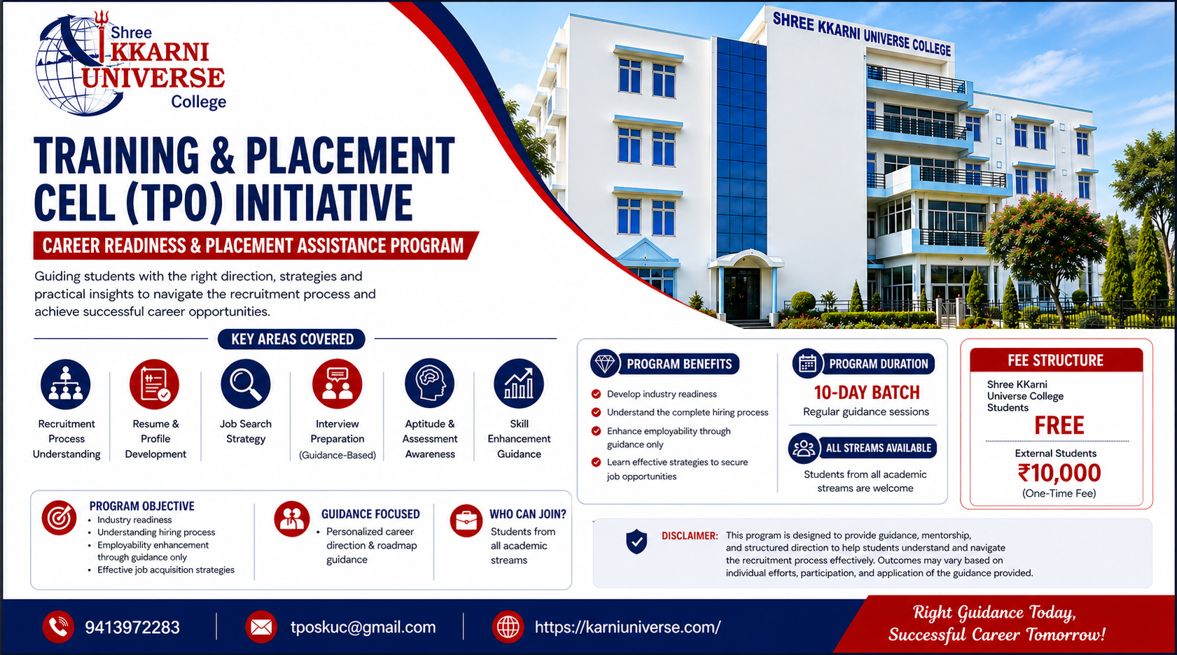 We at KKarni Universe, aspire to establish a system of Quality Assurance that would on a continuous basis evaluate and monitor the quality of education and training imparted at the college, improve the teaching-learning process and ultimately develop the college as a Centre of Excellence. We came into origin in the year 2010. Our policy is to maintain & provide equal opportunities in its programs, activities, admissions, and employment that aims at providing outcome-based education to the Students.