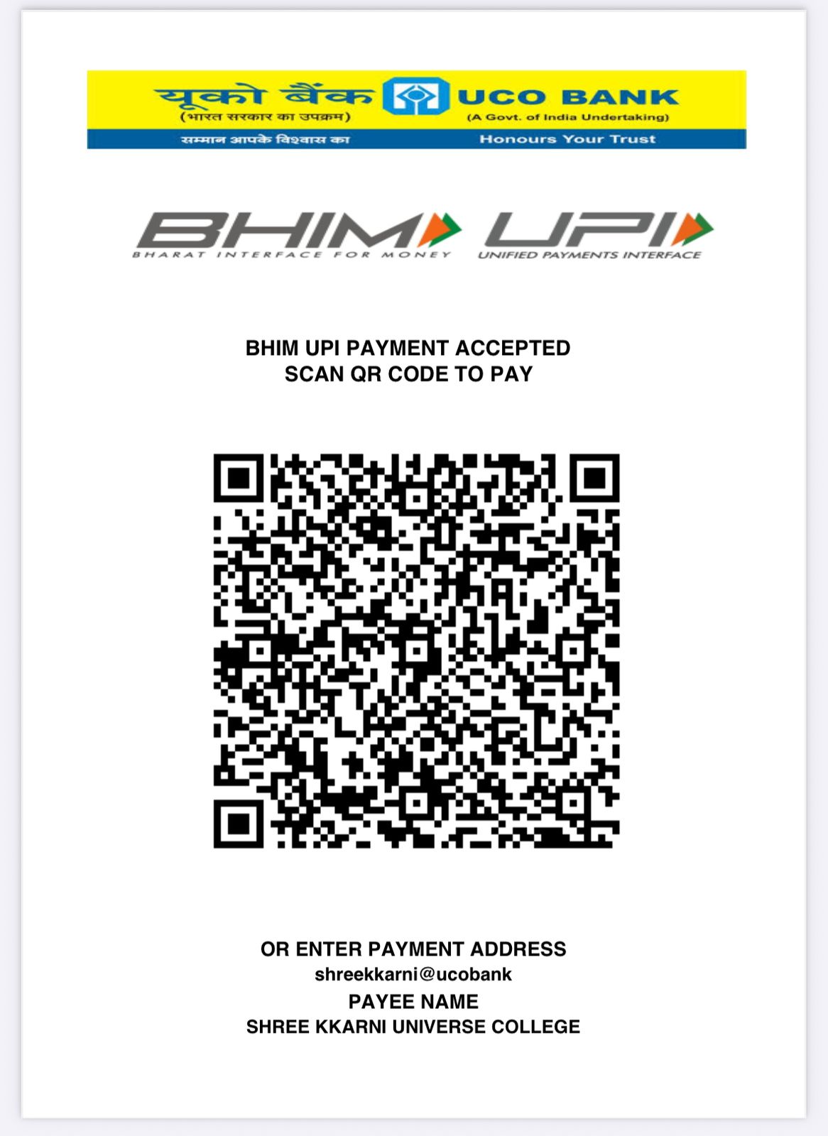 Scan & Pay: For Admission, student has to deposit a total of ₹ 5,500 (Tuition Fees: ₹ 5,000 & Registration Fees: ₹ 500)