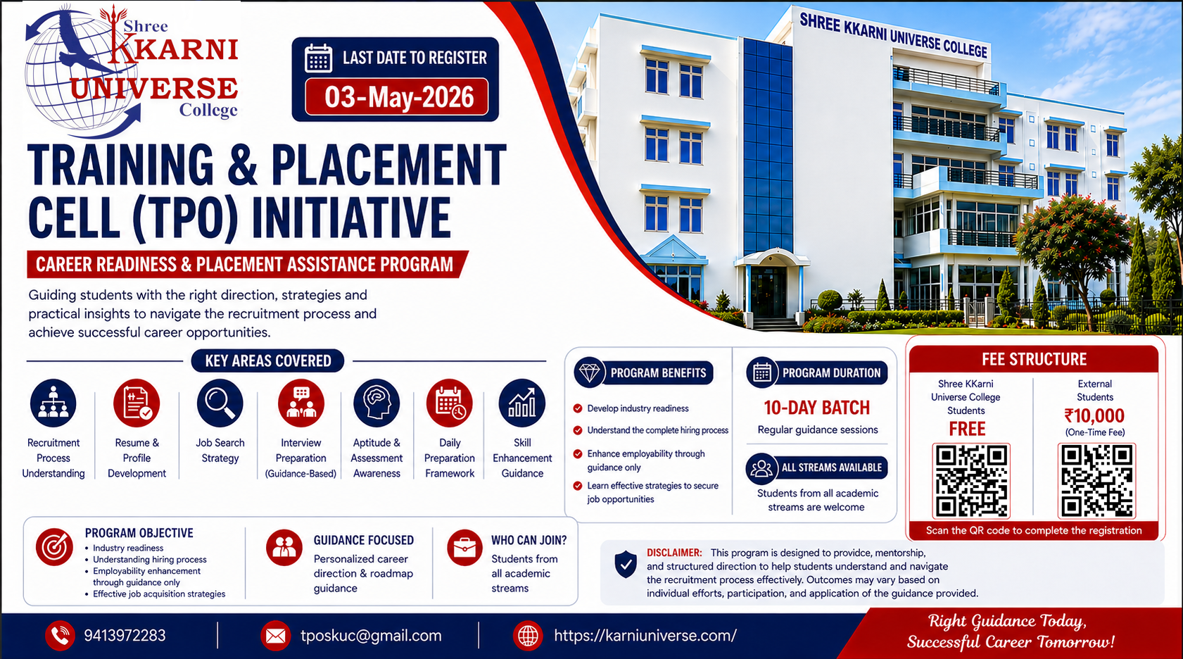 Scan & Pay: For Admission, student has to deposit a total of ₹ 5,500 (Tuition Fees: ₹ 5,000 & Registration Fees: ₹ 500)